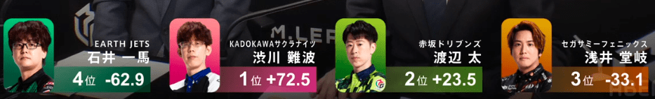 KADOKAWAサクラナイツ:渋川難波:+72.5P