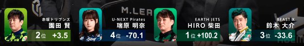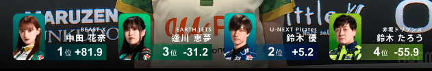 U-NEXT Pirates:瑞原明奈:-70.1P