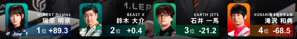 投稿日: 2025年12月8日2025年12月8日 投稿者: エンタメ記者Mリーグ2025-26 レギュラーシーズン第48日(12/8)メンバー選手紹介 Tweet Pocket #ad Mリーグ見るならABEMAプレミアム JETSvs麻雀格闘倶楽部vsBEASTvsPirates 第1回戦 EARTH JETS石井一馬:-21.2PKONAMI麻雀格闘倶楽部滝沢和典:-68.5PBEAST X鈴木大介:+0.4PU-NEXT Pirates瑞原明奈:+89.3P 第2回戦 EARTH JETSKONAMI麻雀格闘倶楽部BEAST XU-NEXT Pirates