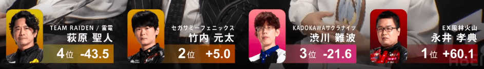 KADOKAWAサクラナイツ:渋川難波:+72.5P