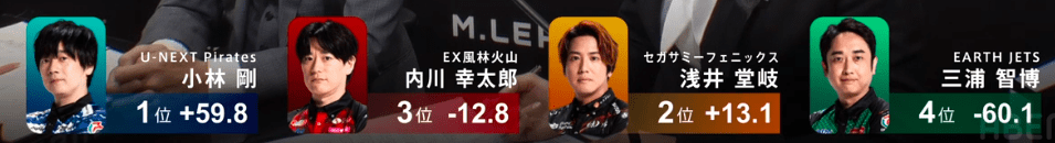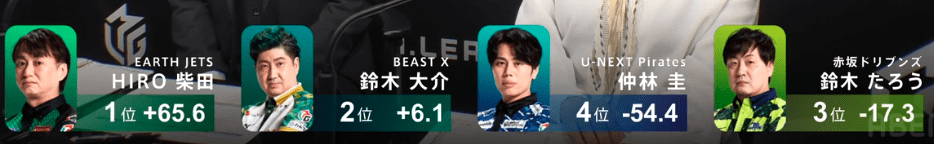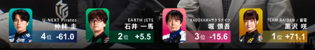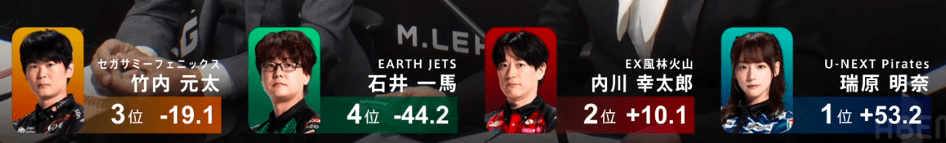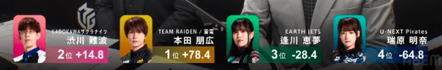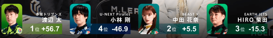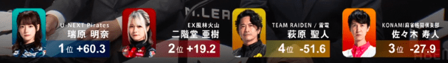 U-NEXT Pirates:瑞原明奈:+60.3P