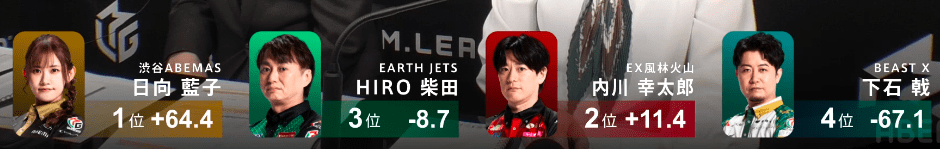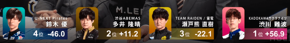渋川難波:-14.0P